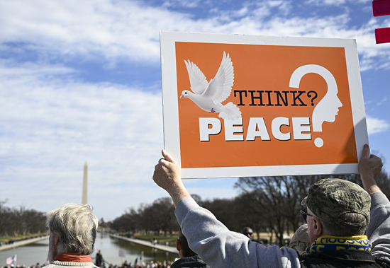 2月19日,美国华盛顿,反战人士聚集在华盛顿特区的林肯纪念堂前举行反战示威。视觉中国供图