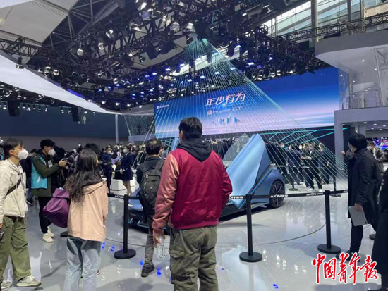在国务院新闻办公室2月2日举行的新闻发布会上,商务部相关负责人将今年确立为“2023消费提振年”,并将以此为主线,统筹开展全国性消费促进活动,同时将继续强化政策引领。图为2022年广州车展广汽埃安展台现场。