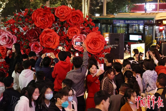 随着旅游业的复苏,今年以来昆明成为云南地区5个热度较高的旅游目的地之一。昆明顺城购物中心一束巨型玫瑰高3.2米,名为“送给昆明的一束花”,吸引了许多市民和游客前来打卡拍照。张文凌/摄