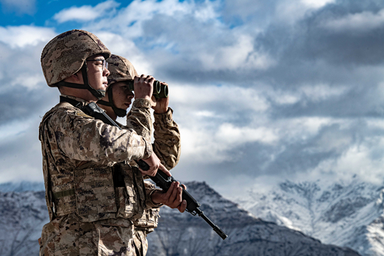 张欢(左)在海拔4500多米的高原边防一线执勤。王述东/摄