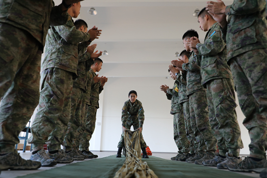 只见学员们默契配合、熟练操作,不一会儿阻力伞就包装完毕,平均完成时间比训练之初快了30多秒,赵莉脸上露出了满意的笑容。