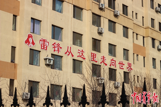 雷锋社区里的标语。郭玉洁/摄