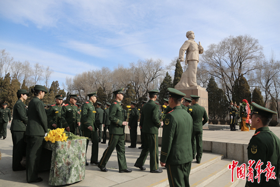3月1日上午,辽宁省抚顺市,雷锋纪念馆雷锋墓前,等待祭奠的青年官兵。2023年是毛泽东等老一辈革命家为雷锋同志题词60周年。当日,中央军委政治工作部、共青团中央组织军地青年典型代表,在抚顺市举行祭扫雷锋墓活动。20名军地青年典型代表、200名驻抚顺部队青年官兵代表、抚顺各界青年代表参加。中青报·中青网记者 赵迪/摄
