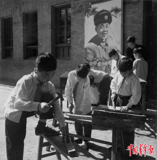 1963年6月,陕西西安青年路小学四年级少先队员组成雷锋修理小组。中青报老照片(贾化民/摄)