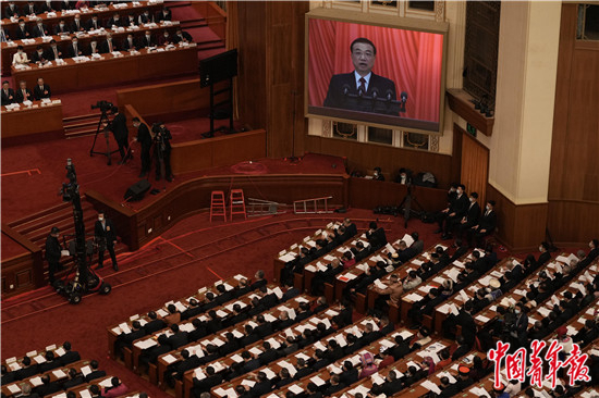 3月5日,十四届全国人大一次会议在北京人民大会堂开幕,国务院总理李克强作政府工作报告。中青报·中青网记者 李隽辉/摄