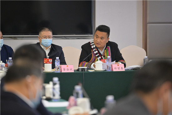 3月6日,北京,十四届全国人大一次会议四川代表团举行代表小组会议,审议政府工作报告。全国人大代表、四川省汉源县永利彝族乡古路村党支部书记郑望春就推动乡村振兴发言。视觉中国供图