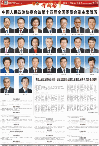 中国人民政治协商会议第十四届全国委员会主席、副主席、秘书长、常务委员名单