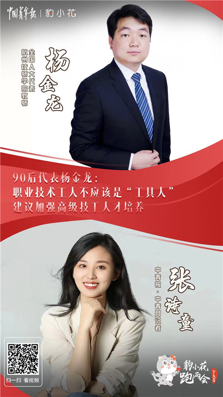 从技术工人到世界冠军,两次当选全国人大代表,杭州技师学院教师杨金龙感觉身上有沉甸甸的责任。