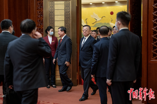 3月12日,北京人民大会堂,部长们走出休息室,准备进行宪法宣誓。当日,在十四届全国人大一次会议第五次全体会议上,经投票表决通过了国务院其他组成人员名单。新一届国务院26个组成部门“一把手”全部亮相。