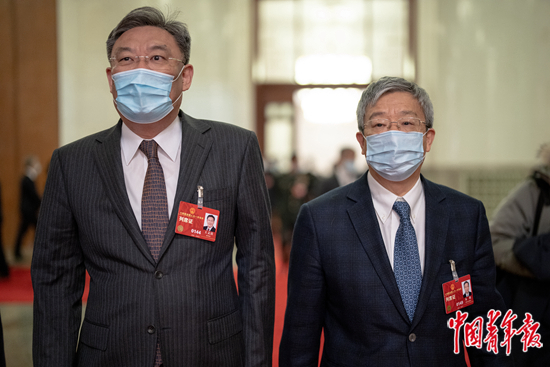 3月12日,北京人民大会堂,生态环境部部长黄润秋(左)。