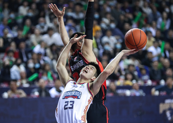 3月11日,南京,CBA联赛常规赛第33轮,南京同曦宙光队球员林葳(下)在比赛中进攻。新华社记者 杨磊/摄
