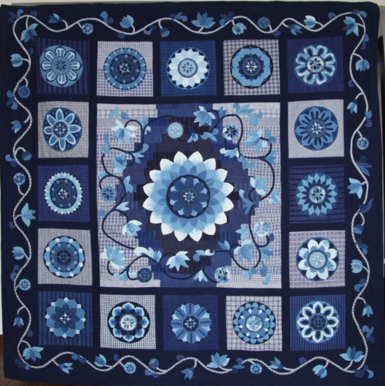 从各地调研结束回到北京后,元愫下定决心要复刻这朵“蓝莲花”。可是“尝试好多次,就是不对”。系统学来的日本拼布技术突然不管用了,元愫有些郁闷,但也没有就此放弃。3年间,上百次的实验,元愫制作出的“蓝莲花”始终与博物馆百衲衣上的那朵差异很大。