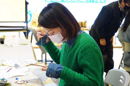 活动现场,一位女士在穿针引线中体验刺绣和拼布的乐趣。司芮熙/摄