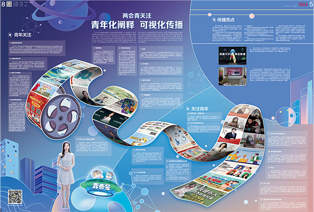 3月5日至13日,本报持续推出了5期特别节目《青春元宇宙两会联播》,由真人和虚拟AI形象“青小豹”共同主持,打造“青春元宇宙”虚拟场景,将本报两会品牌栏目再次传播转化,累计传播量超过625万。