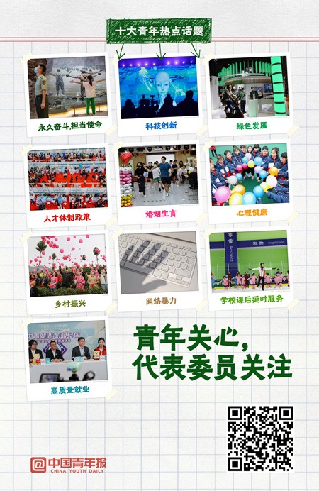 两会前,团中央权益部、中国青年报社等机构联合梳理了青年关心的十大热点话题。两会期间,代表委员进行了回应。本报以漫画形式进行梳理,形式新颖,被多家媒体转载。
