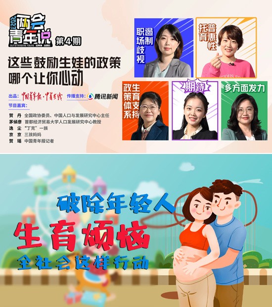 3月8日,国际劳动妇女节,本报关注青年女性生育问题,围绕《关于生娃,这些年轻人在纠结什么》《这些鼓励生娃的政策,哪个让你心动》两个话题,推出两期《两会青年说》。3月12日,本报推出数据动画短视频产品《数说两会|破除年轻人生育烦恼,全社会这样行动》,用动漫的方式描画一位新手妈妈“痛并快乐”的产后生活。