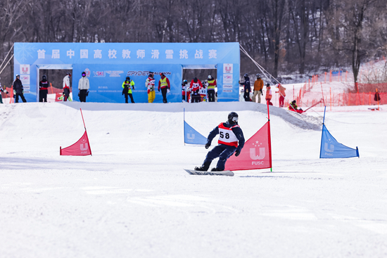 3月15日,首届中国高校教师滑雪挑战赛在吉林举行,图为比赛现场。中国大学生体育协会供图