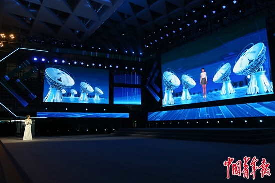 3月17日,北京理工大学良乡校区,第十三届“挑战杯”中国大学生创业计划竞赛全国竞赛开幕式暨大学生青创报国汇报会上,运用多种技术手段完成的数字仿真人——“灵”,出现在了主持台上。中青报·中青网记者 赵迪/摄