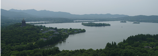 策展团队拍摄的西湖实景,与李嵩《西湖图》构图非常接近,由此推测李嵩曾在这一带进行创作。