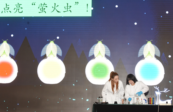 2022年9月8日,南京,江苏省第三届科技馆辅导员大赛在南京科技馆举行,在科学实验赛项,参赛科技辅导员们将抽象的科学原理通过实验与艺术展现的形式巧妙融合,让科学教育、科普宣传更加直观、形象、灵动。视觉中国供图(资料图片)