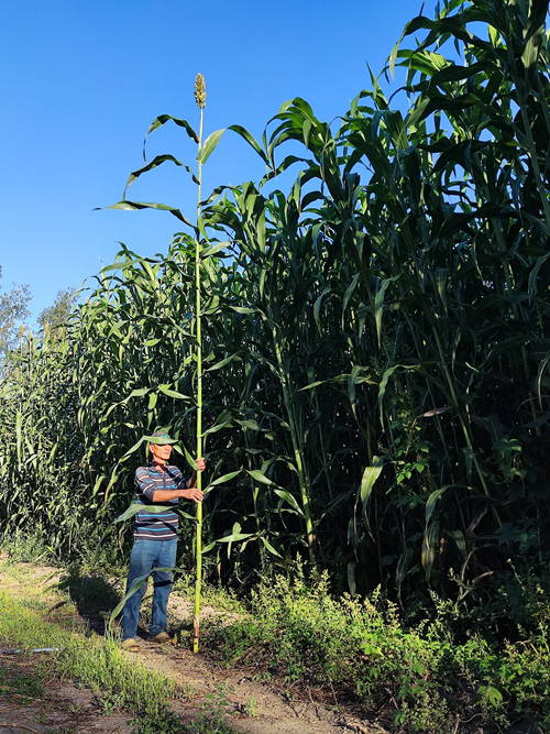 2022年9月6日,科研团队在北京市房山区测产中科甜968品种,该高粱品种株高4.35米。中国科学院遗传与发育生物学研究所研究员谢旗团队供图