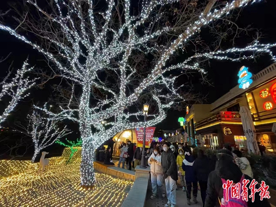 2月4日晚,蓝色港湾湖畔美食街上的人群,靠河一侧为外摆区。中青报·中青网见习记者 朱彩云/摄