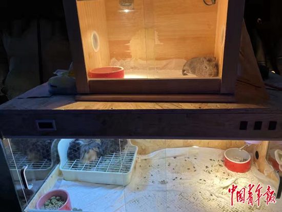 2月4日晚8点半,张洁莹和田欣悦的小宠摊位上,还有4只荷兰猪。中青报·中青网见习记者 朱彩云/摄