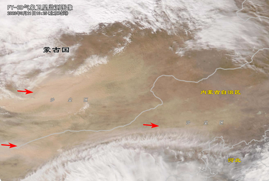风云三号气象卫星监测今年以来强度最强沙尘过程的图像。中国气象局供图