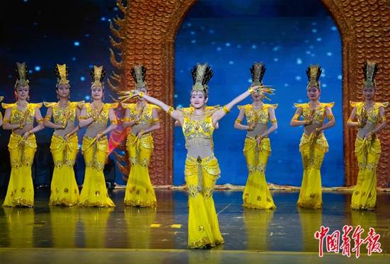 3月29日,北京外国语大学,第十六届“残疾人事业好新闻奖”颁奖暨共享芬芳·共铸美好公益演出活动上,闻名世界的舞蹈《千手观音》结束后,来自中国残疾人艺术团的艺术家们谢幕。当日,第十六届“残疾人事业好新闻奖”在京颁奖。中国残疾人艺术团和北京外国语大学合唱团为现场的获奖记者和大学生代表献上精彩的表演。中青报·中青网记者 李峥苨/摄