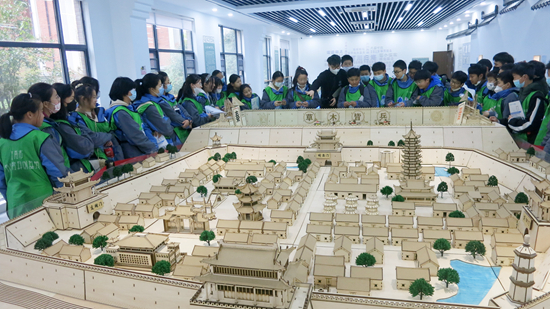 3月24日,安徽省淮南实验中学山南一中的同学们在淮南非遗馆参观。安徽省淮南实验中学山南一中把学生兴趣课堂搬进非遗展馆,使研学成为素质教育的第二课堂。胡锋/摄