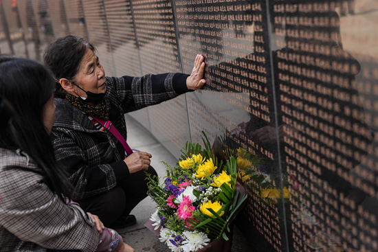 4月3日,74岁的董长兰从北京来到沈阳抗美援朝烈士陵园,祭奠自己的父亲。清明将至,各地开展祭奠活动,缅怀先烈,寄托哀思。新华社记者 潘昱龙/摄
