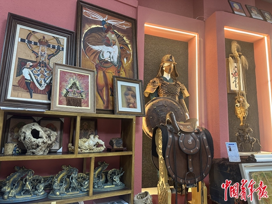 温都尔木乐工作室内展出的工艺品。中青报·中青网记者 石佳/摄