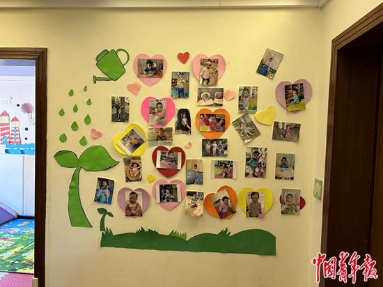 4月8日,北京市海淀区一家庭托育点的照片墙。中青报·中青网见习记者 贾骥业/摄