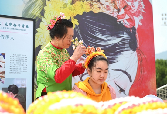 当日,以“传承文化根脉 点亮奋斗青春”为主题的福州大学城“优秀传统文化进校园”开幕式在福建医科大学旗山校区举行。现场举行了非遗传承人与高校社团结对子、非遗艺术展演、传统文化讲座等多项活动。新华社记者 林善传/摄