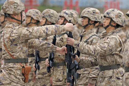 4月7日,北部战区海军某训练基地组织数千名春季入伍新兵进行授枪仪式,以军人特有的“成人礼”,激发他们矢志军营、建功海防的训练热情。王远方/摄