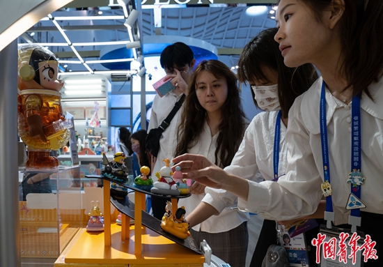 在8号国货精品展区,泡泡玛特的展厅也吸引了不少青年消费者的眼球。这家大型盲盒消费品牌在与时俱进方面下足了功夫。青年消费者王潇霆坦言:“购买盲盒类产品主要是为了满足精神层次的需求。”