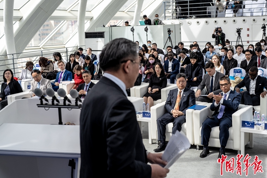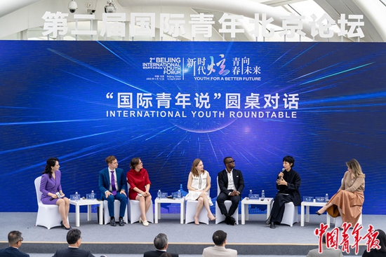 “国际青年说”圆桌对话环节,年轻代表们围绕“青年如何做好沟通中外友好的使者”发表演讲。中青报·中青网记者 李隽辉/摄