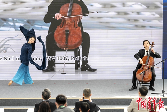 中国交响乐团大提琴声部副首席李成和青年舞者汤琪琪在开幕式上表演。中青报·中青网记者 李隽辉/摄