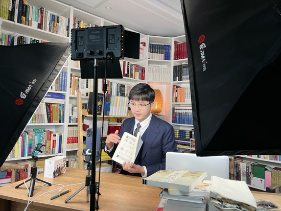 赵健正在直播荐书。受访者供图