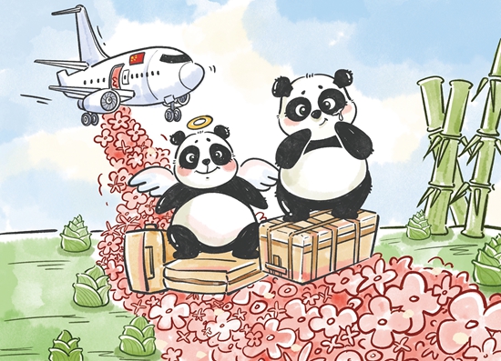 据国家林草局消息,旅居美国大熊猫“丫丫”将于近日回到阔别20年的祖国。按计划,“乐乐”可能也将一同回国,魂归故里。漫画:程璨