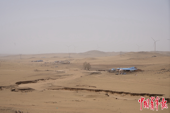 4月18日,内蒙古包头,天气晴朗,一阵风卷着沙尘从达茂旗的草原上刮过。