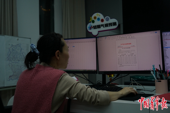 4月13日,内蒙古包头,包头市气象台首席预报员姚锦桃夜间制作天气实况信息通报,当时包头市达茂旗满都拉镇已出现沙尘暴天气。