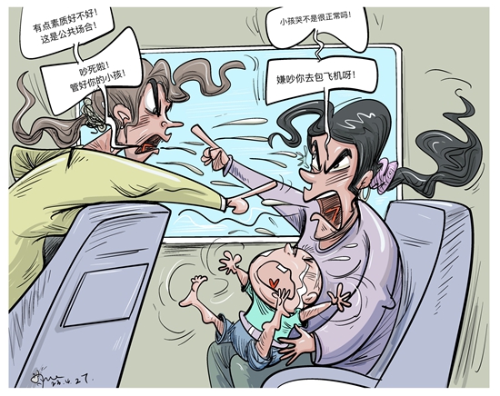 4月23日,重庆高铁上,一名孕妇和宝妈激烈对吼的场景,引发网友热议。视频中,前排女子对着后排座带娃的宝妈大叫:“不要以为你带着个孩子不得了!”而宝妈也似乎不甘示弱,回称,“那你是孕妇你也不得了!”两人大声互骂,声音响彻整个车厢。(极目新闻 4月25日)漫画:徐简