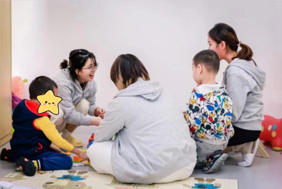 自闭症康复师在为自闭症儿童进行康复训练。大米和小米公司供图
