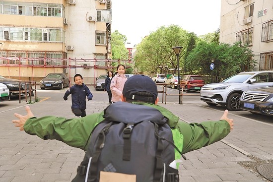 4月29日,北京。中资企业驻苏丹员工刚进小区,守候多时的孩子向他飞奔而来。张旭 金添 郭晶虎/摄