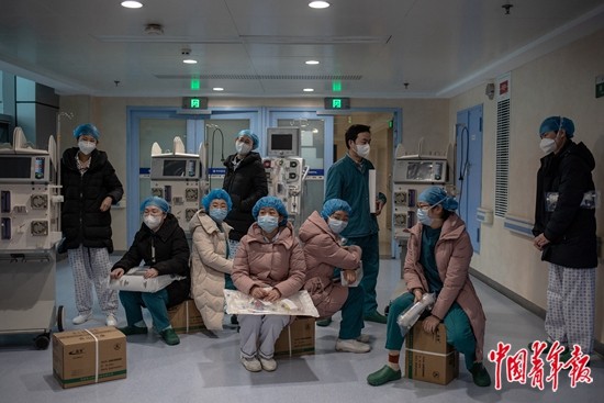 2020年2月26日,湖北省武汉市同济医院光谷院区,血液净化中心的护士们在等待即将送到的援助物资。这支由20多名专科护理人员组成的“护肾小队”,负责为重症及危重症新冠肺炎患者做血液净化,清除体内细胞因子风暴。中青报·中青网记者 李隽辉/摄