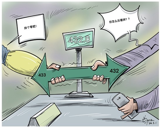 近日,嘉兴平湖市监局查办多起“反向抹零”案件。其中,朱女士在某饭店消费432.8元,却遭“反向抹零”收取433元。平湖市监局对该饭店进行了查处,罚款1500元。(澎湃新闻 5月10日)漫画:徐简