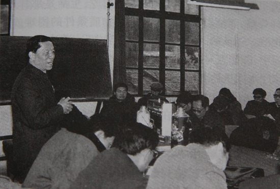 20世纪70年代,陈能宽在四川梓潼给科研人员讲课。中国工程物理研究院供图