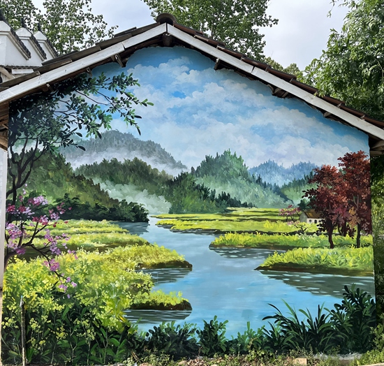 今年3月以来,为进一步助力驻点村和美乡村建设,武汉纺织大学发挥艺术学科优势,选派艺术专业师生团队赴驻点双泉村捐建艺术墙绘项目,通过近40天的艺术创作,完成了15幅大型立体墙绘作品,作品展现了当地秀美绮丽的自然风光和乡土文化,不仅吸引周边村民驻足观赏,还吸引了附近城市居民前来旅游打卡拍照,带动了当地文旅产业发展。