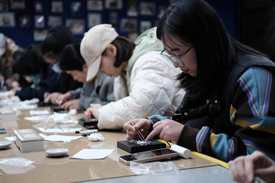 正在体验贝雕制作的年轻人。图片由受访者提供